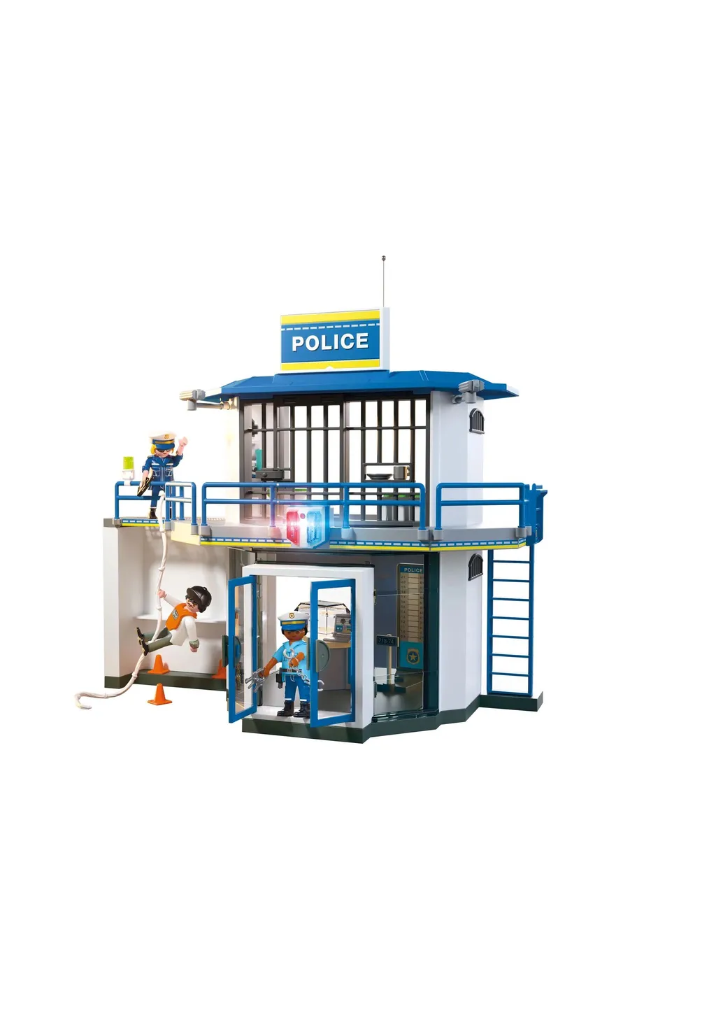 PLAYMOBIL 71874 City Action - Polizeiwache mit Fahndungsraum Ermittlungen mit Köpfchen: Die Polizeiwache mit Verhörraum bietet moderne Ermittlungsarbeit, Festnahmen und überraschende Fluchtversuche. Mit Mugshot-Kamera und Filmfolie, Stecktafel für Fahndungsbilder sowie Beweismittelbox entstehen realistische Polizeigeschichten für Kinder ab 4 Jahren. Spannende Features wie der Bettlaken-Trick des Häftlings oder der geheime Ausstieg hinter der Toilette sorgen für Action. Viele Zubehörteile, drei Figuren und solide Verarbeitung fördern Fantasie und Rollenspiel. Produktabmessungen: 38,5 × 28,4 × 12,5 cm; Gewicht ca. 1,42 kg. Ohne Batterien, kein Aufbau erforderlich. Produktinformationen: Marke: PLAYMOBIL Serie: City Action Herstellernummer: 71874 Alter: Ab 4 Jahren Altersempfehlung: 4-10 Jahre Material: Kunststoff Farbe: Mehrfarbig Gewicht: 1,42 kg Größe: 38,5 × 28,4 × 12,5 cm Zusammenbau erforderlich: Nein Batterien: Nicht erforderlich Lieferumfang: Polizeistation mit Verhörraum, Mugshot-Kamera & Filmfolie, Stecktafel, Beweismittelbox, 3 Figuren, weiteres Zubehör Achtung! Nicht für Kinder unter 3 Jahren geeignet, da Kleinteile verschluckt werden können. Erstickungsgefahr! Geeignetes Alter: Ab 10 Jahre