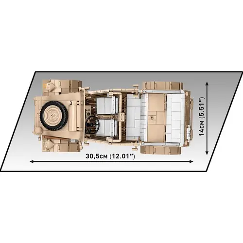 COBI-2288, Sd.Kfz 234/3 STUMMEL, Historical Collection WW II, 438 Elemente, 2 Figuren, Altersgruppe: 8+, Maßstab 1:35. Wir haben ein Klemmbausteinmodell des deutschen schweren Panzerwagens Sd.Kfz 234/3 STUMMEL im Maßstab 1:35 aus 438 Elementen entworfen. Nach dem Bau ist der Stummel 18 cm lang und passt in seiner Größe sowohl zu den Figuren als auch zu anderen Fahrzeugen, die wir in diesem Maßstab veröffentlichen. Das Fahrzeug besticht durch sein sehr gepflegtes Design, die Tarnung und die Aufdrucke, die es zu einem sehr wichtigen Objekt in der COBI Historical Collection machen. Hier gibt es keine Aufkleber, wir verwenden ausschließlich permanente Drucke. Das Fahrzeug verfügt über bewegliche Elemente wie Räder und eine Kanone. Das Set enthält zwei Figuren, die ein Mitglied der Panzerwagenbesatzung und einen deutschen Soldaten mit Aufdrucken auf der Rückseite darstellen. Ergänzt wird das gesamte Set durch ein Schild mit dem Fahrzeugnamen. Das Set ist nicht nur für junge Geschichtsinteressierte ein Muss, sondern vor allem für erwachsene Sammler und Fans von Militärtechnik. Bauen Sie Geschichte, Stein für Stein! Sd. Kfz. Der 234/3 Stummel ist ein deutsches gepanzertes Radfahrzeug, das im Zweiten Weltkrieg eingesetzt wurde. Es war mit einer 75-mm-Kanone mit einer Reserve von 50 Schuss ausgestattet, was es effektiv gegen andere gepanzerte Fahrzeuge und leicht gepanzerte Ziele machte. Das Auto hatte einen Tatra 103-Dieselmotor und erreichte eine beachtliche Höchstgeschwindigkeit von bis zu 90 km/h. Im Gelände schnitt es fast genauso gut ab wie Kettenfahrzeuge. Dieses Infanterieunterstützungsfahrzeug wurde in einer kleinen Stückzahl von etwa 88 Einheiten hergestellt.438 hochwertige Elemente, hergestellt in der EU von einem Unternehmen mit über 20-jähriger Tradition, die Sicherheitsstandards für Kinderprodukte erfüllen, voll kompatibel mit Klemm-Bausteinen anderer Marken, Blöcke mit Aufdrucken verformen sich nicht und verblassen nicht beim Spielen oder unter Temperatureinfluss, 100 % Drucke, keine Aufkleber, 2 Figuren, historische Drucke! klare und intuitive Anweisungen basierend auf Zeichnungen und Symbolen, Typenschild, Modellabmessungen (L x H): 18 cm (7 Zoll) x 7,5 cm (3 Zoll) x 9 cm (3,5 Zoll)Warnhinweise:ACHTUNG! Für Kinder unter 36 Monaten nicht geeignet! Achtung! Nicht für Kinder unter 3 Jahren geeignet, da Kleinteile verschluckt werden können. Erstickungsgefahr! Geeignetes Alter: Ab 8 Jahre